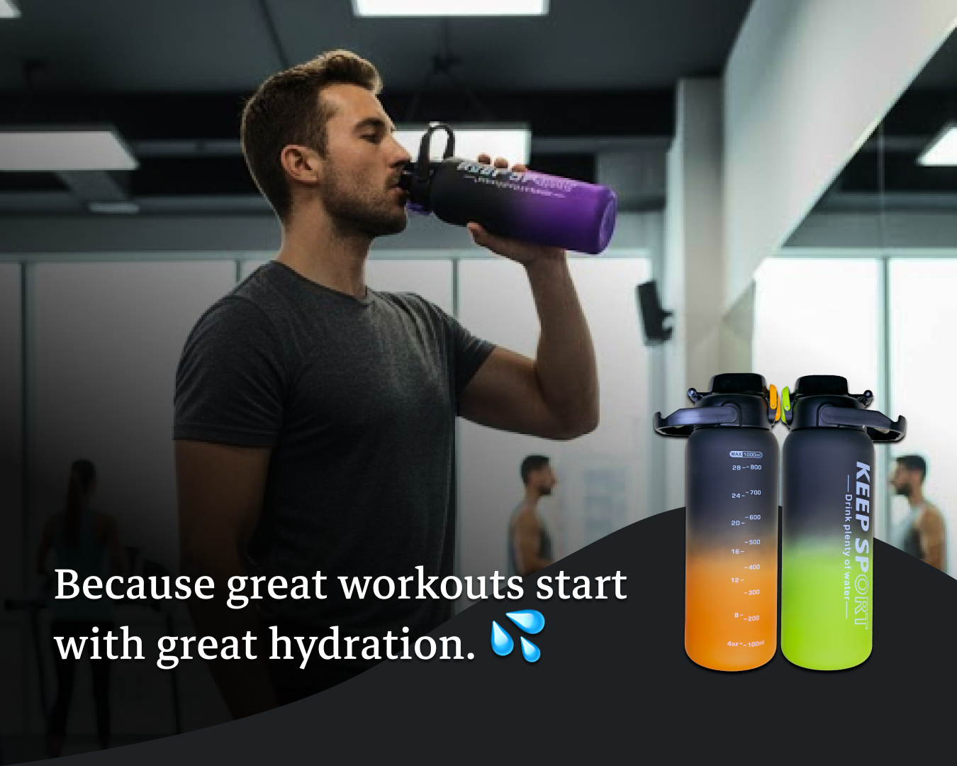 احرص على ترطيب جسمك طوال اليوم مع زجاجة المياه الكبيرة سعة 1 لتر بتصميم عصري ومتين.
