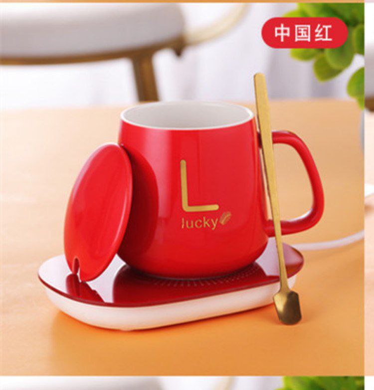 مج البورسلين الفاخر مع قاعدة تسخين كهربائية ومعلقة ذهبية – مشروبك دايمًا سخن لأخر رشفة