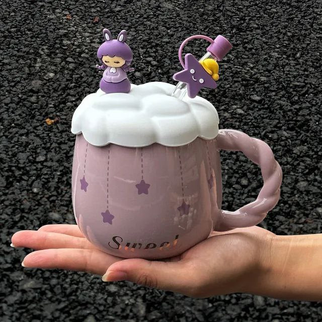 مج ديزني الدبدوب بورسلين بغطاء سيليكون وشاليموه زجاج