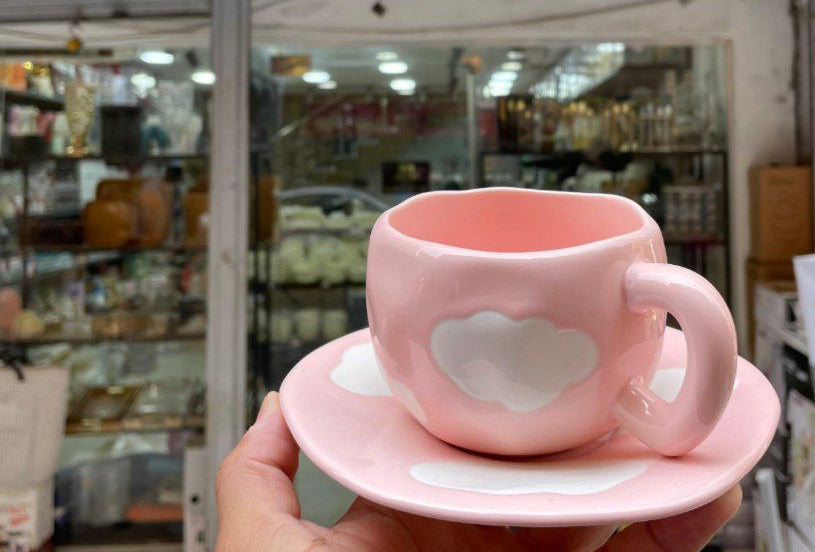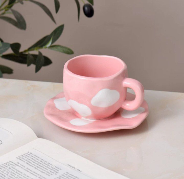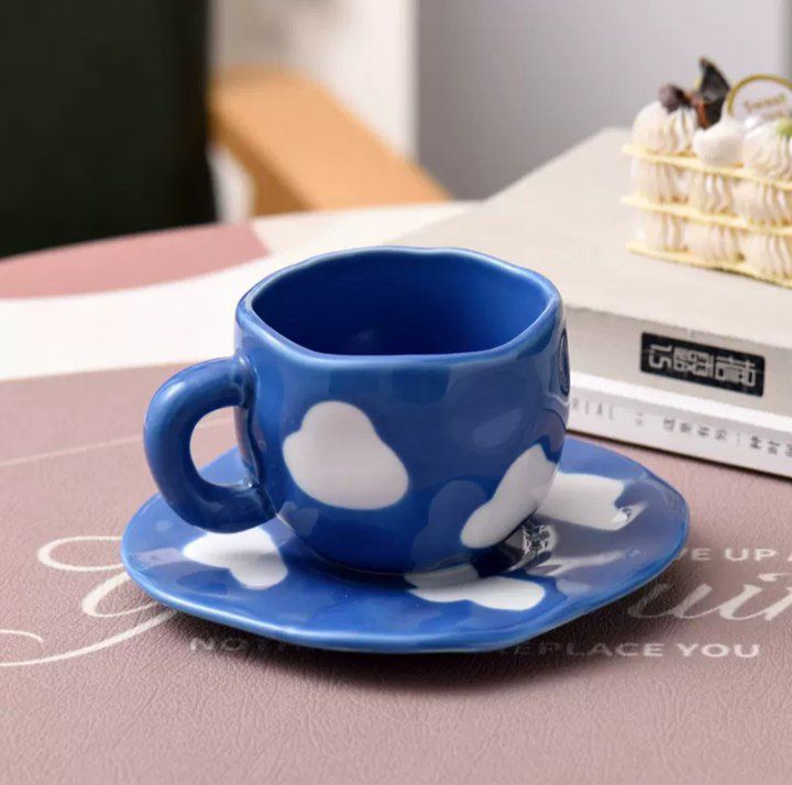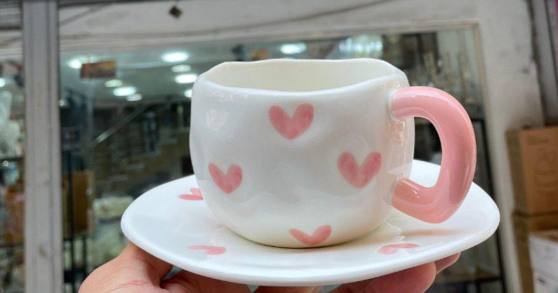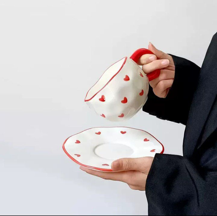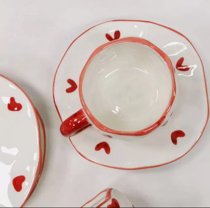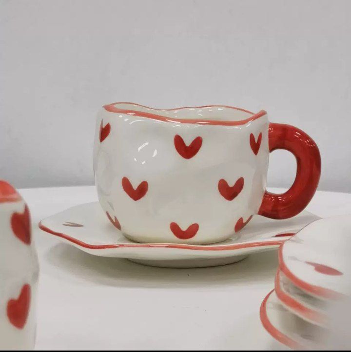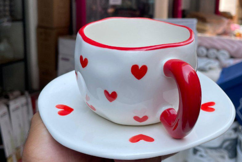 • مج بورسلين فاخر مزوّد بطبق بنفس الرسومات لمظهر متكامل وأنيق.