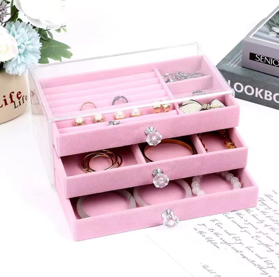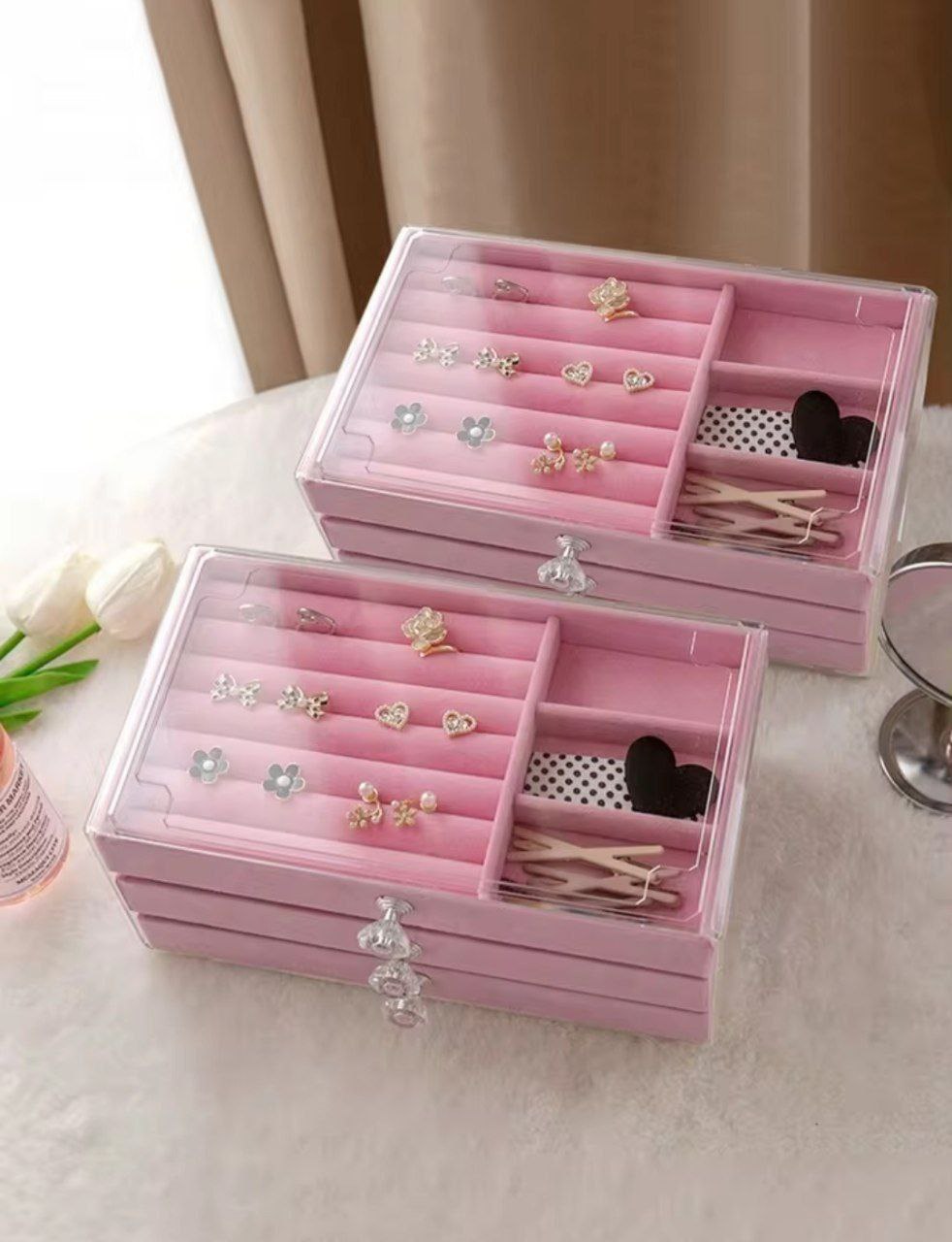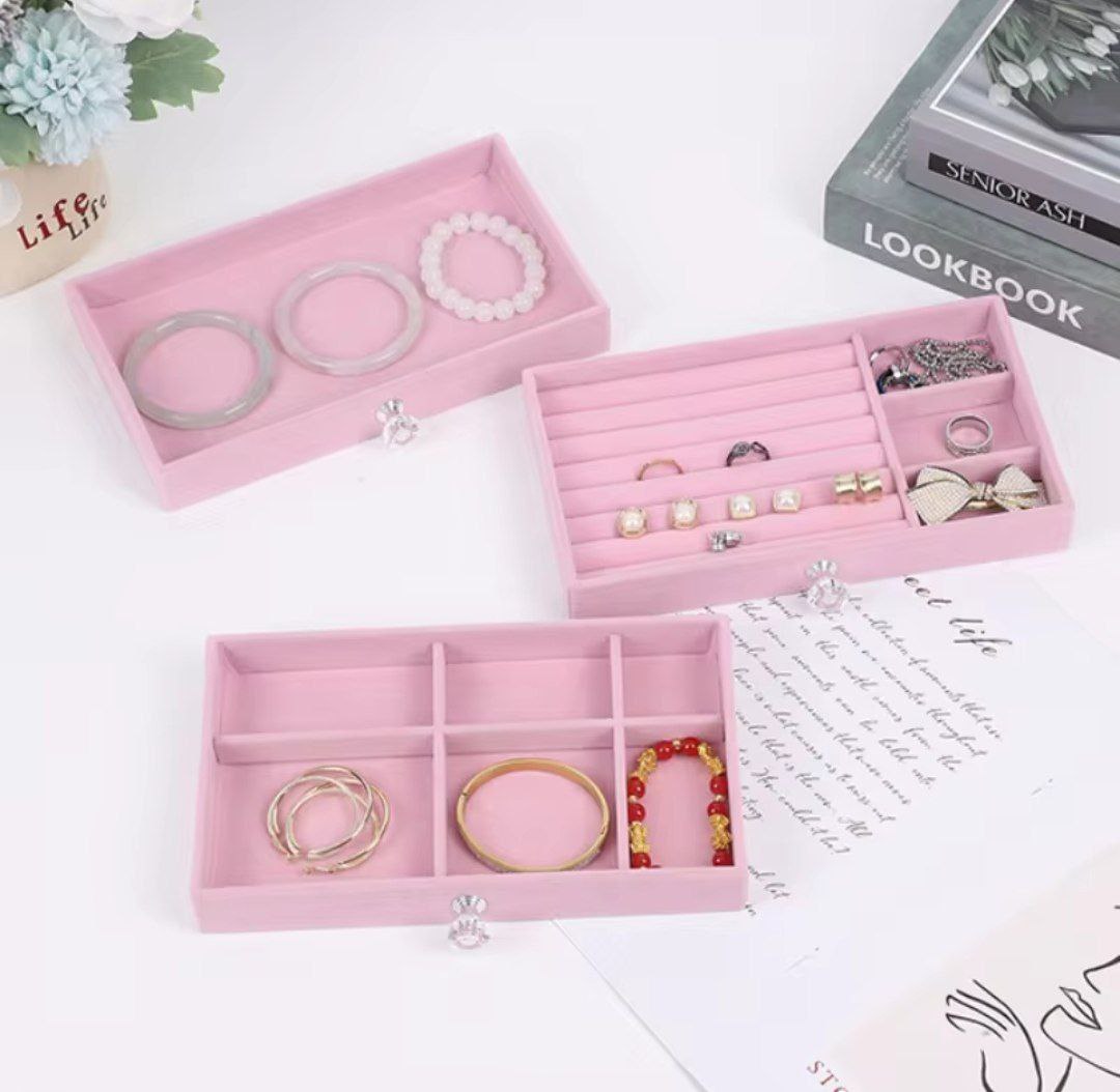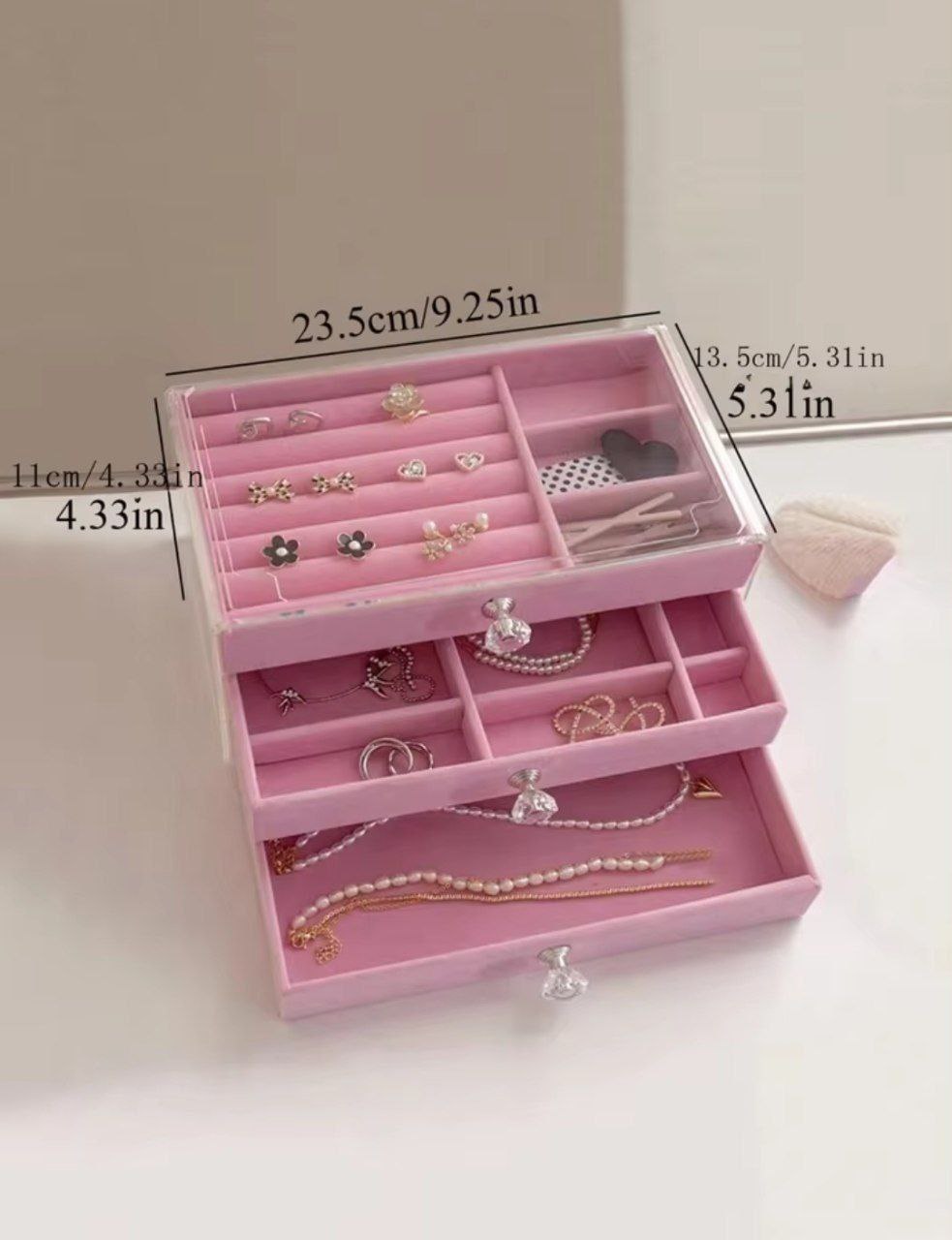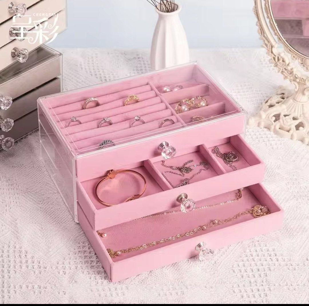 تصميم 3 دور لتخزين كل أنواع الإكسسوارات (خواتم، سلاسل، أساور).