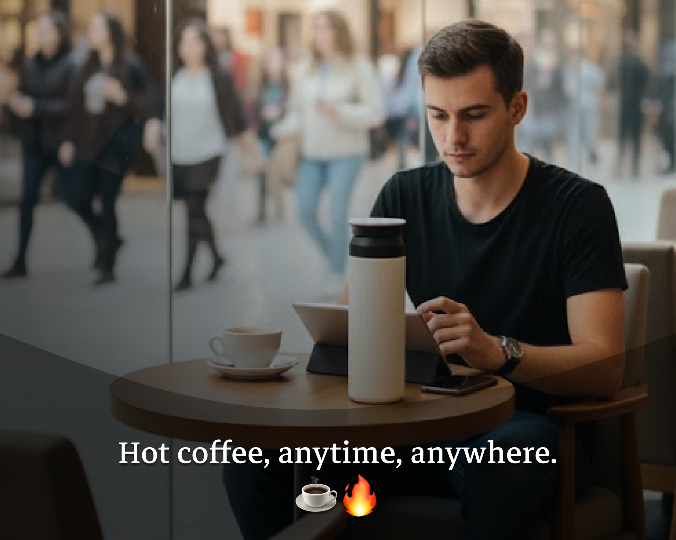 مصمم بشكل أنيق ومتين ليحافظ على حرارة المشروبات الساخنة أو برودة العصائر لساعات طويلة، مما يجعله مثاليًا للاستخدام في العمل، السيارة، الجيم أو أثناء السفر.